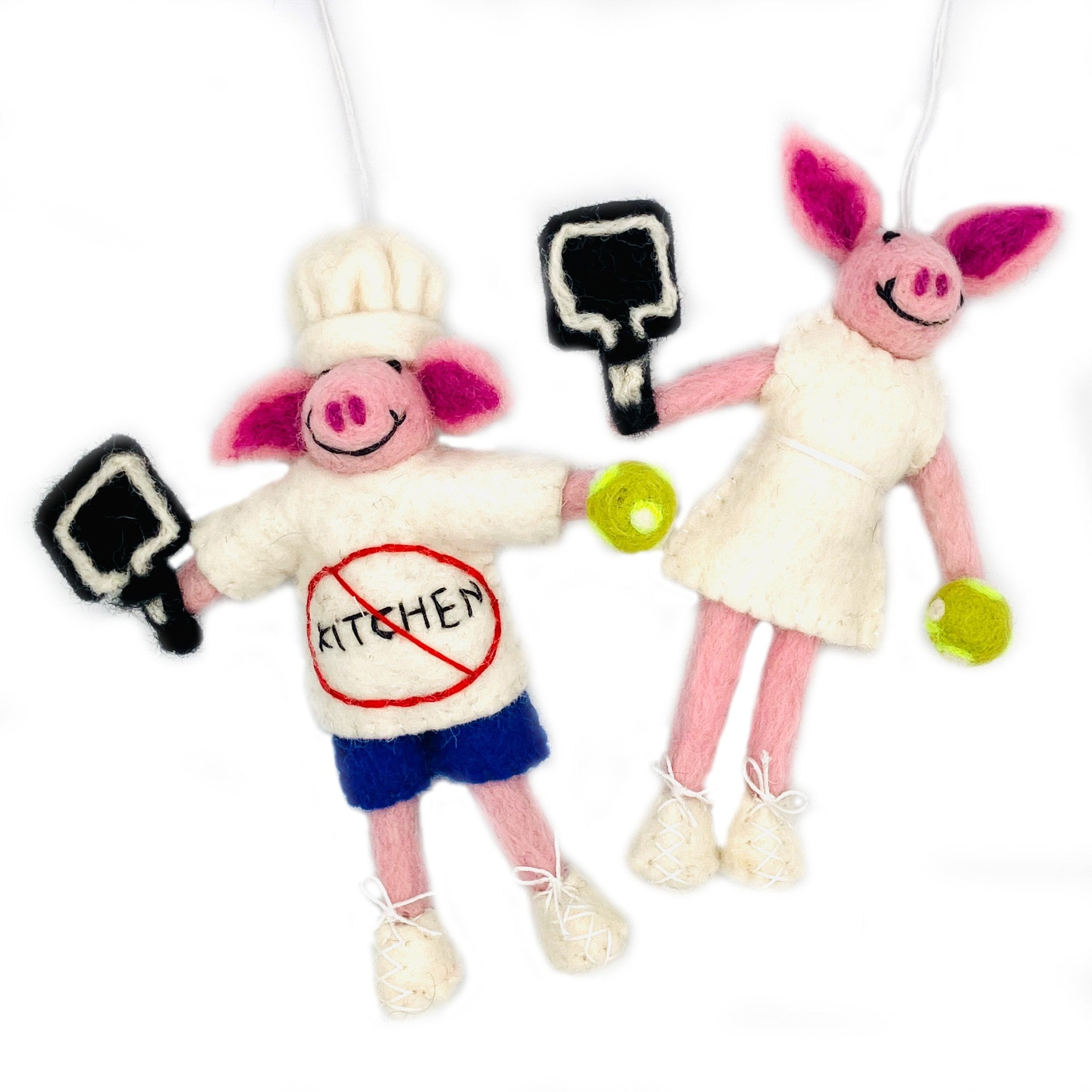 Pickleball Pig Felt Ornament: Don't be a Ball Hog!
