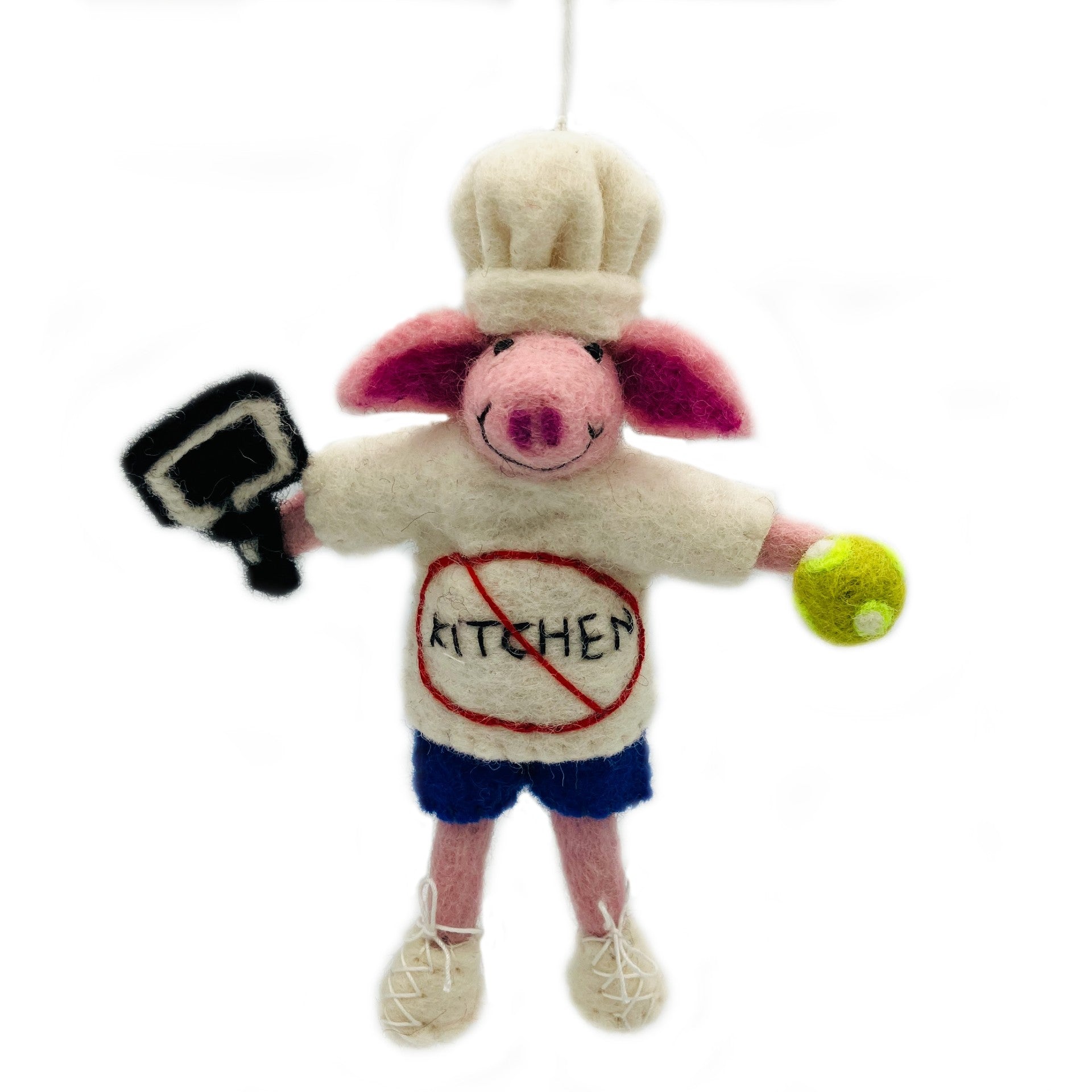 Pickleball Pig Felt Ornament: Stay Out of the Kitchen!
